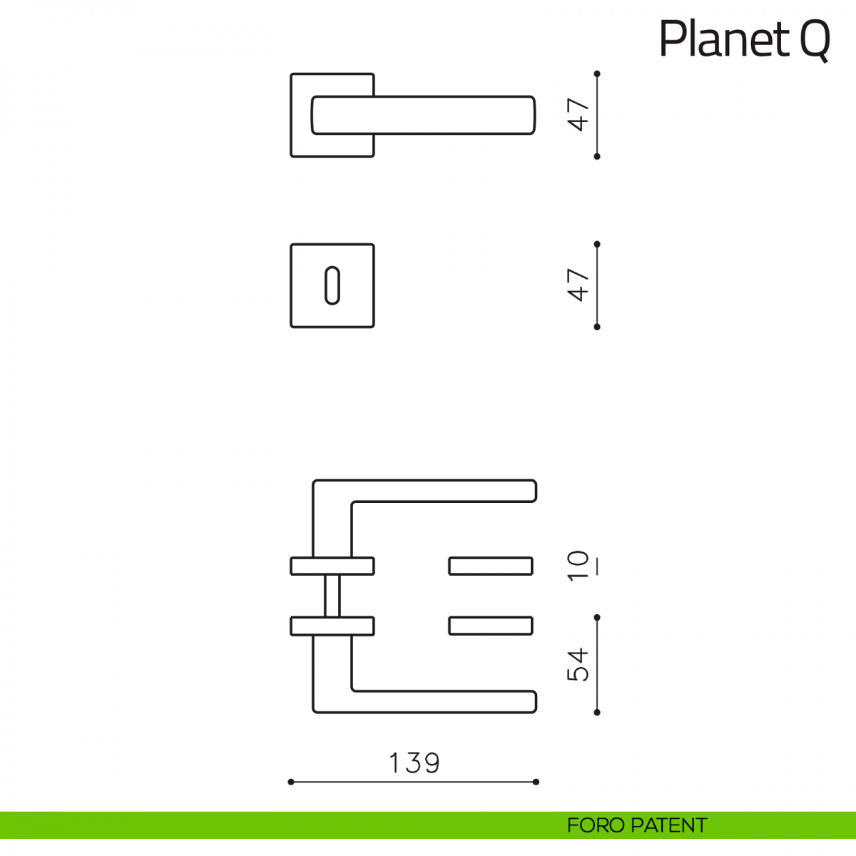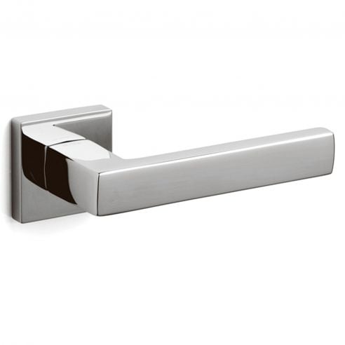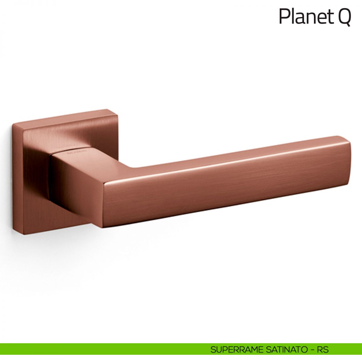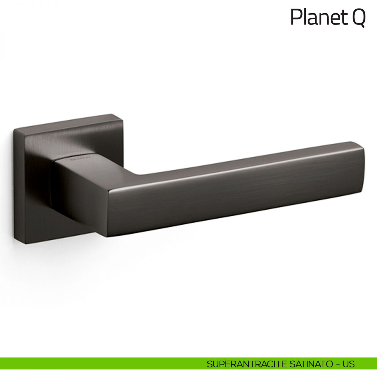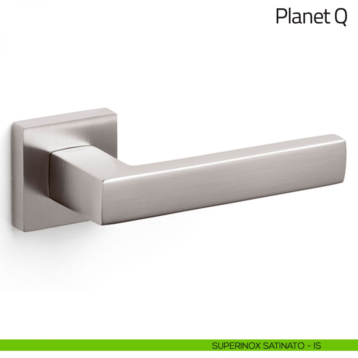 Maniglia per porta interna Planet Q Olivari con rosetta e bocchetta quadrata. Design by Luca Casini.