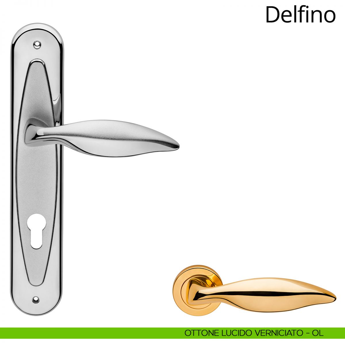 Maniglia per porta interna Delfino Linea Calì con placca.