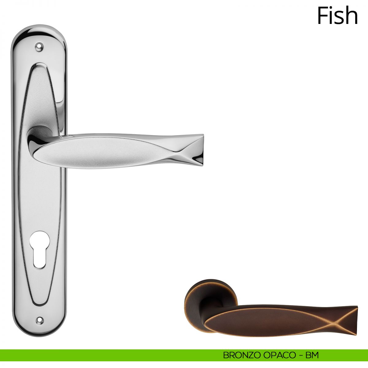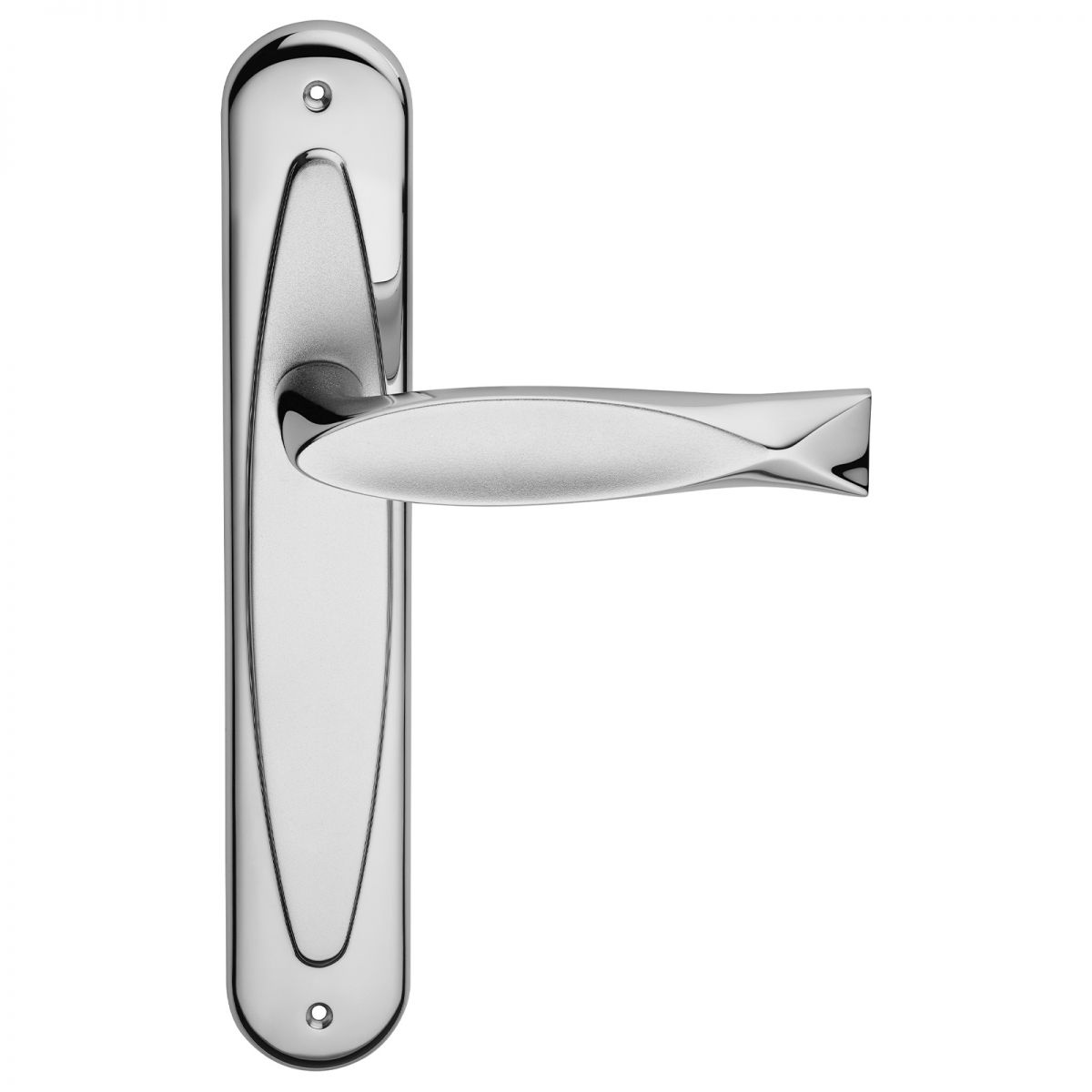 Maniglia con placca per porta Fish Linea Calì - cromo lucido + cromo sabbiato - foro patent