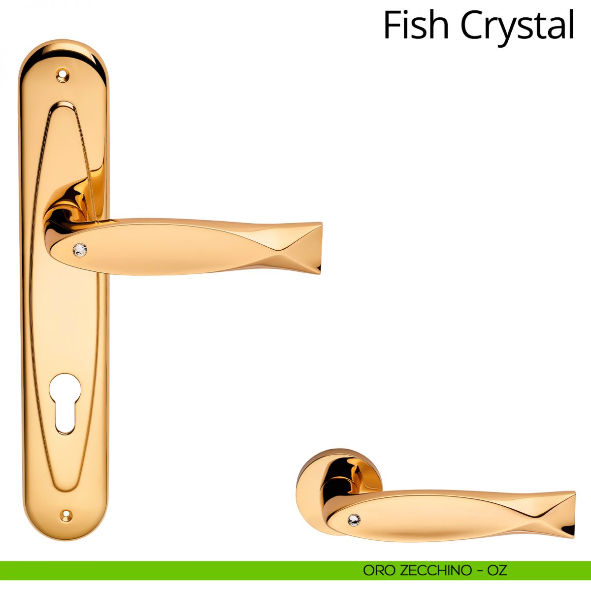 Dal design particolarmente originale, la nuova linea di maniglie Fish Crystal si caratterizza per il particolare “occhio” in cristalli Swarovski® che emana i suoi riflessi iridescenti rendendola “viva”. Questo prezioso elemento infonde un fascino raffinato impreziosito e si riconosciuto dal sigillo “Crystals from SWAROVSKI®”, che funge da certificato di autenticità. La maniglia per porte Fish Crystal Linea Calì risplende di cristalli SWAROVSKI® negli ambienti più esclusivi e importanti rappresentando l’emblema del lusso più contemporaneo.