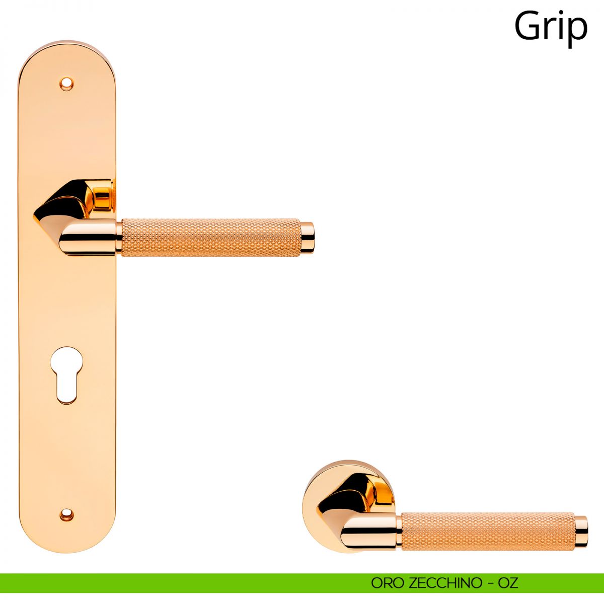 Maniglia con placca per porta Grip Linea Calì - oro zecchino - foro yale