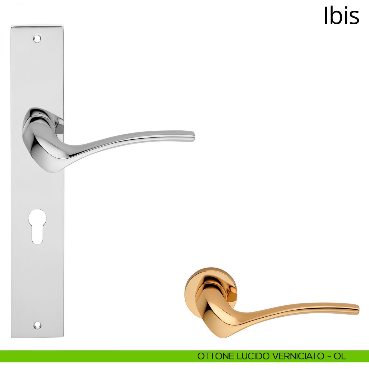 Maniglia con placca per porta Ibis Linea Calì - ottone lucido verniciato - foro yale