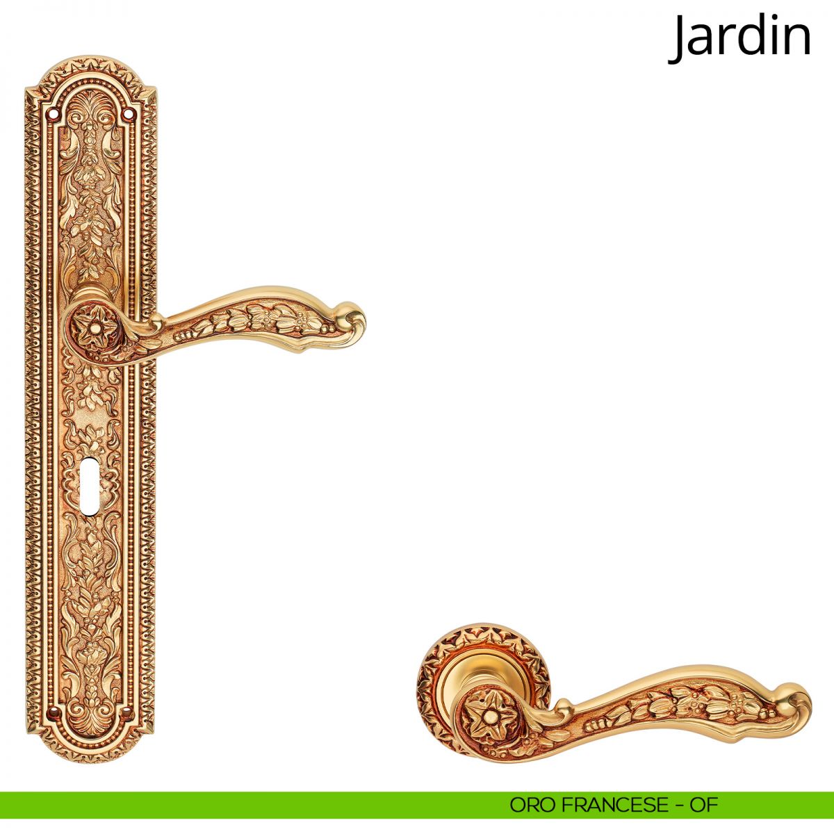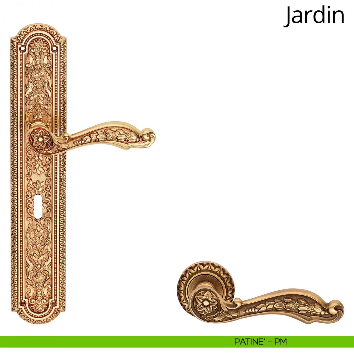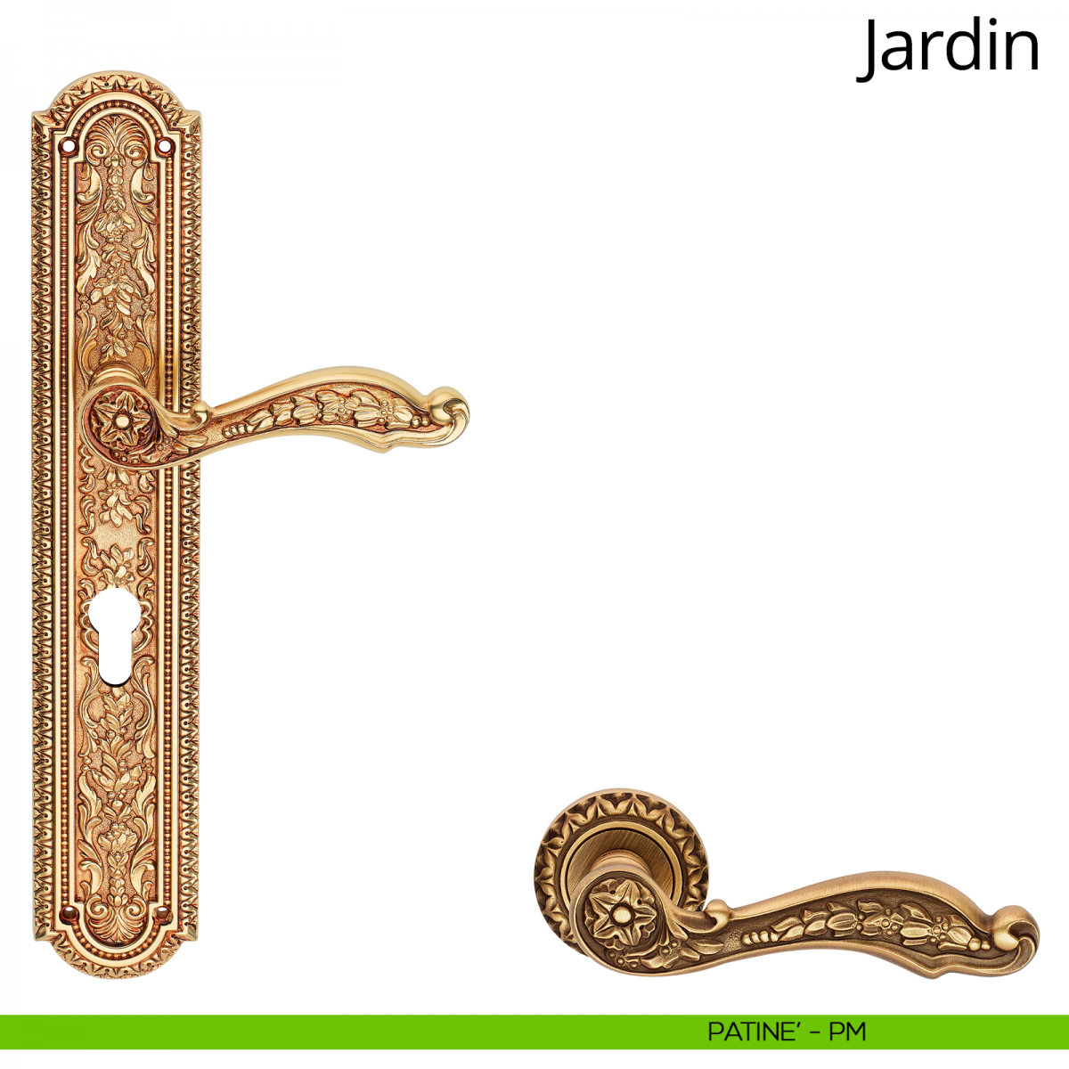 I tempi passano e le mode cambiano, ma lo stile -e con questo ci riferiamo al “grande stile”- rimane sempre attuale. Così è anche per il Luigi XIV; vuoi per il suo essere così importante, vuoi per i suoi decori ispirati alla natura, son sempre più gli interior designer interessati a questo particolarissimo stile. Jardin, la collezione di maniglie vintage, trae ispirazione proprio dal Luigi XIV più autentico, e lo fa rispettando i suoi stilemi. Come in un tempo che fu’ abili cesellatori impreziosivano con i loro fregi gli ambienti più nobili, i designer Linea Calì ora trasformano dei semplici pezzi di ottone in oggetti di enorme impatto estetico. Particolarmente interessante è la maniglia su placca, interamente decorata. Attenzione, non si tratta di un semplice “pattern”, ma di finissimi arabeschi floreali; questo si evince dai poetici motivi floreali che incorniciano il foro che ospita il cilindro della serratura. Altrettanto degni di nota sono il set d’entrata, imponente grazie al pomolo finemente lavorato, e il maniglione su placca, dove un tripudio di intarsi culminano in un raffinato intreccio.