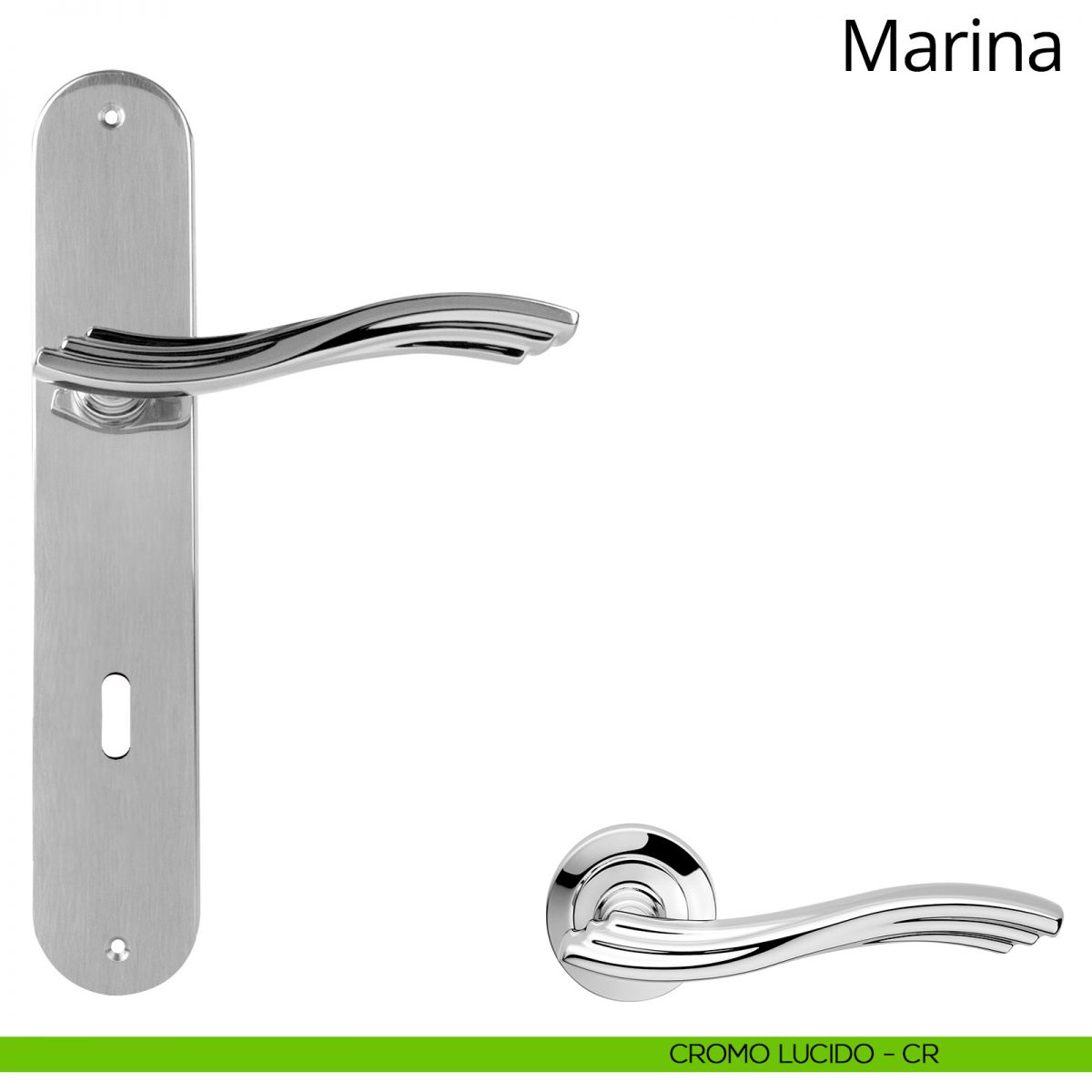 Maniglia con placca per porta Marina Linea Calì - cromo lucido - foro yale