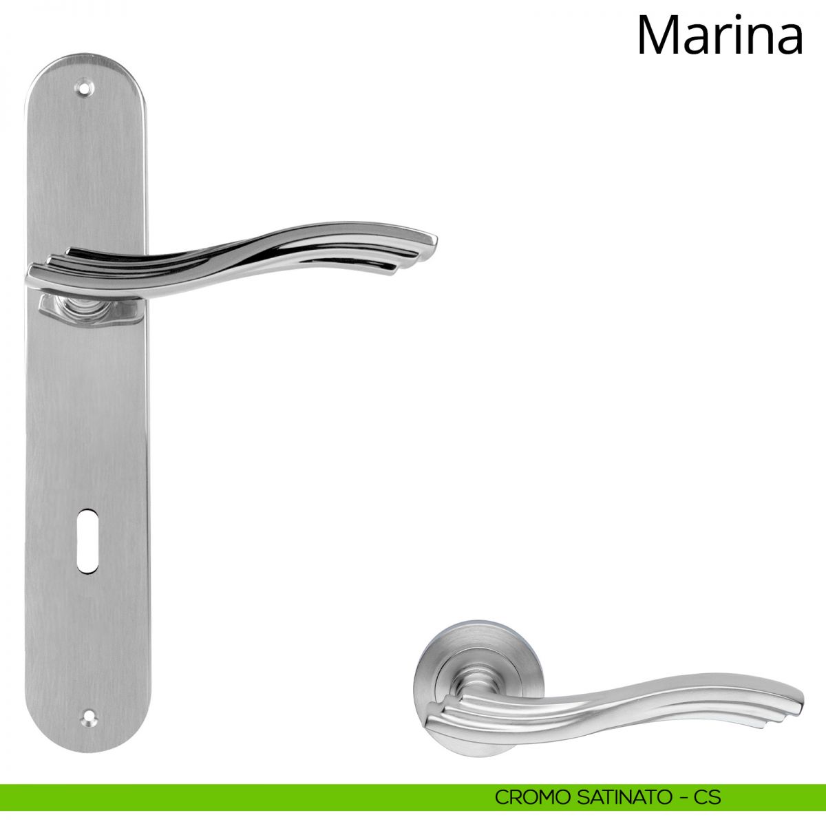 Maniglia con placca per porta Marina Linea Calì - cromo satinato - foro yale
