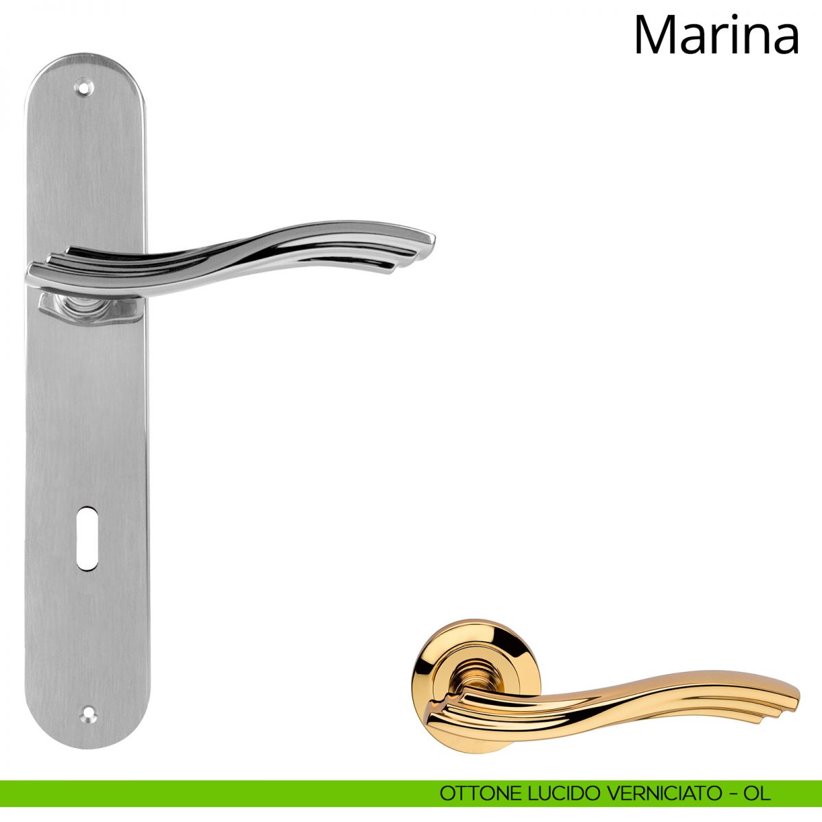 Maniglia con placca per porta Marina Linea Calì - ottone lucido verniciato - foro yale