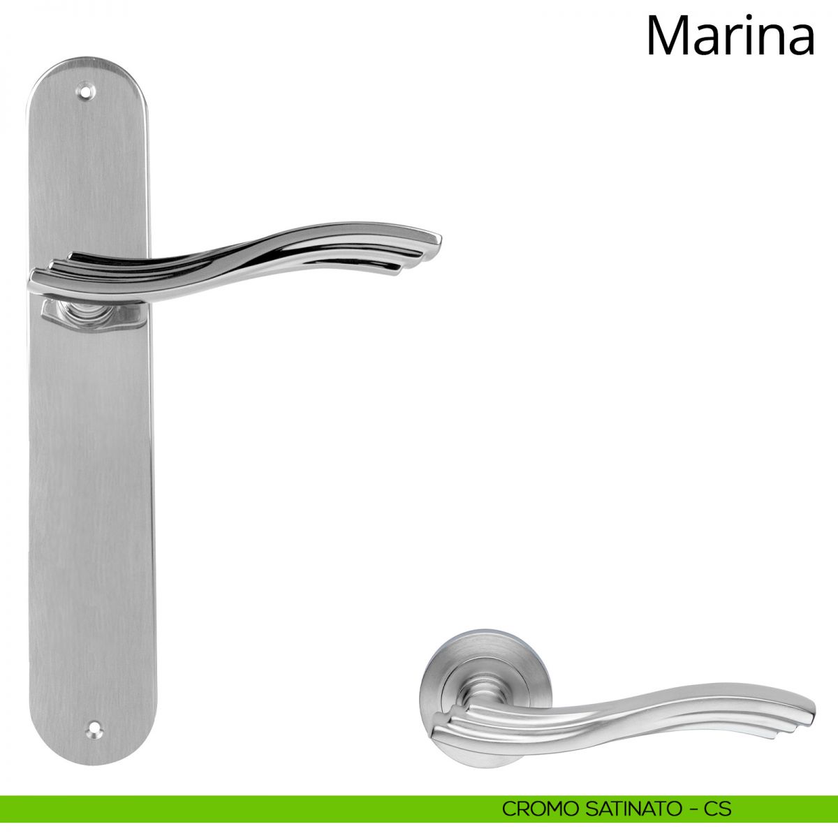 Maniglia con placca per porta Marina Linea Calì - cromo satinato - foro patent