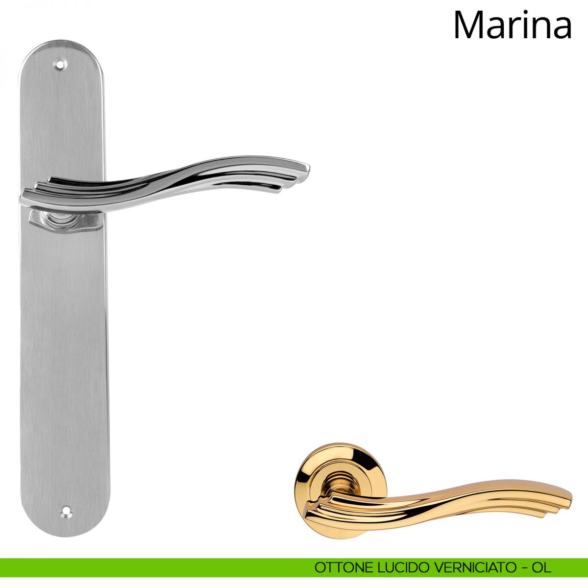 Maniglia con placca per porta Marina Linea Calì - ottone lucido verniciato - foro patent