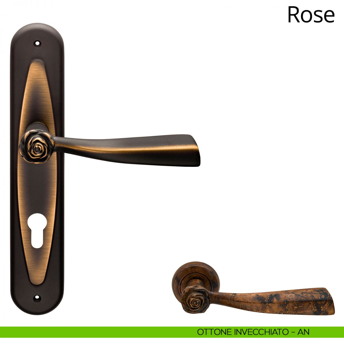 Gli amanti dello stile Shabby-chic rimarranno colpiti da questa collezione di maniglie per porte e finestre soprannominata Rose; contraddistinta una piccolissima rosa Bonica posta sul gambo all’inizio dell’impugnatura, Rose è una fra le collezioni di maniglie più indicata per questa particolare tipologia di arredo. Lo stile shabby-chic, il cui termine fu coniato dalla rivista The World of Interiors nel 1980, è una forma d’interior design influenzata da culture mediterranee (la Provenza, la Toscana e la Grecia in primis) per le quali i mobili e arredi appaiono vecchi e sbiaditi; questo particolare effetto è ottenuto colorando di tinte pastello gli arredi e sottoponendoli in seguito a un particolare trattamento di levigatura che consente al materiale sottostante di emergere, simulando così i segni di usura dati dal tempo. La collezione di maniglie per porte e finestre Rose è disponibile, oltre al classico bronzo opaco, in alcune particolari finiture volte a enfatizzare ulteriormente questo sapore di “vissuto” rendendola un ottimo complemento per questa tipologia di arredi.
