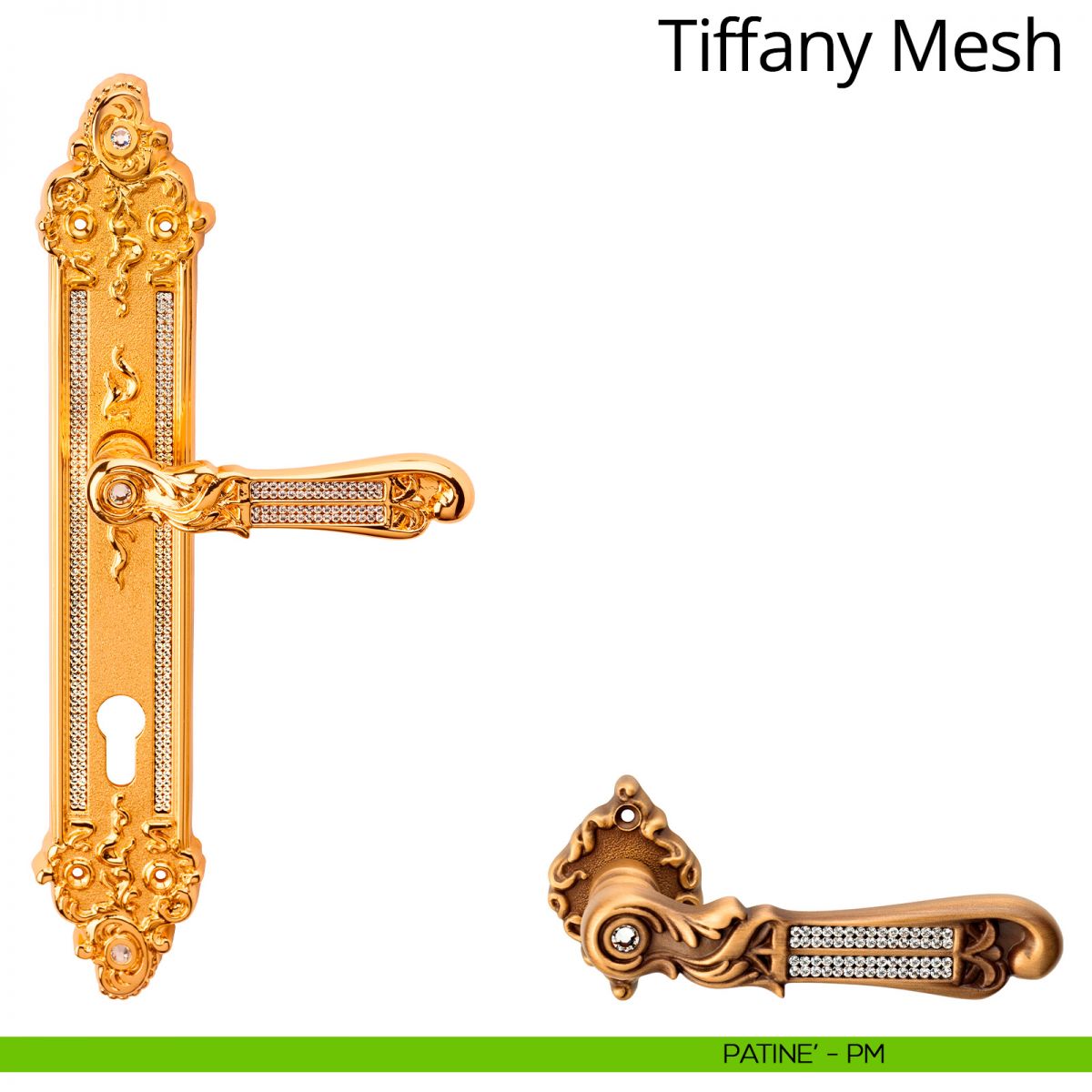 Pomolo per porta con Swarovski fisso Tiffany Mesh Linea Calì con rosetta artistica senza bocchette.
