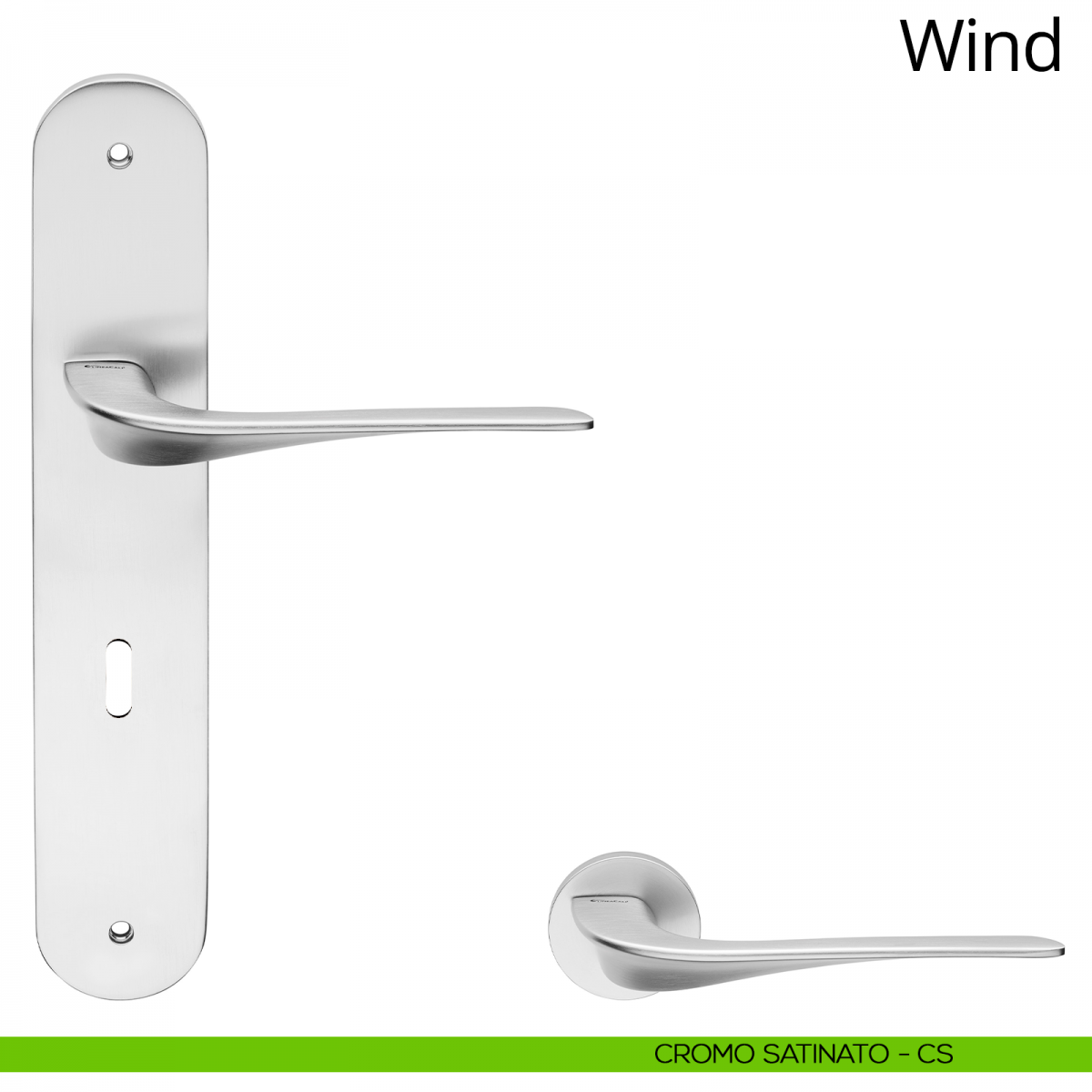 Wind è il nome della nuova maniglia per porte e finestre dal gusto sofisticato e contemporaneo. L’intenzione era quella di creare una maniglia moderna, che non rientrasse nella categoria “minimal”, e che riuscisse a farsi notare con discrezione ed eleganza. La parte superiore, perfettamente piana, si contrappone alla parte sottostante che prevede un volume estroflesso, che creare effetti di luci e ombre grazie alla differente inclinazione rispetto alla sorgente luminosa. L’impugnatura, sottile e slanciata, grazie ai profili sapientemente smussati trasmette una piacevole sensazione di morbidezza alla mano, garantendo un elevato comfort e grado di sicurezza. La rosetta ribassata da 6 mm di spessore rende questa collezione ideale per le porte moderne (comprese le filomuro) creando un piacevole punto di appoggio visivo. Wind è perfetta sia nelle abitazioni private che nel contract dove, grazie agli elevati standard qualitativi e le materie prime utilizzate (ottone italiano di grande qualità), è un’ottima alternativa a quanto disponibile sul mercato internazionale.