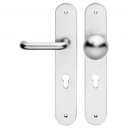Maniglia per albergo su placca Samoa con pomolo Sfera fisso Linea Calì.