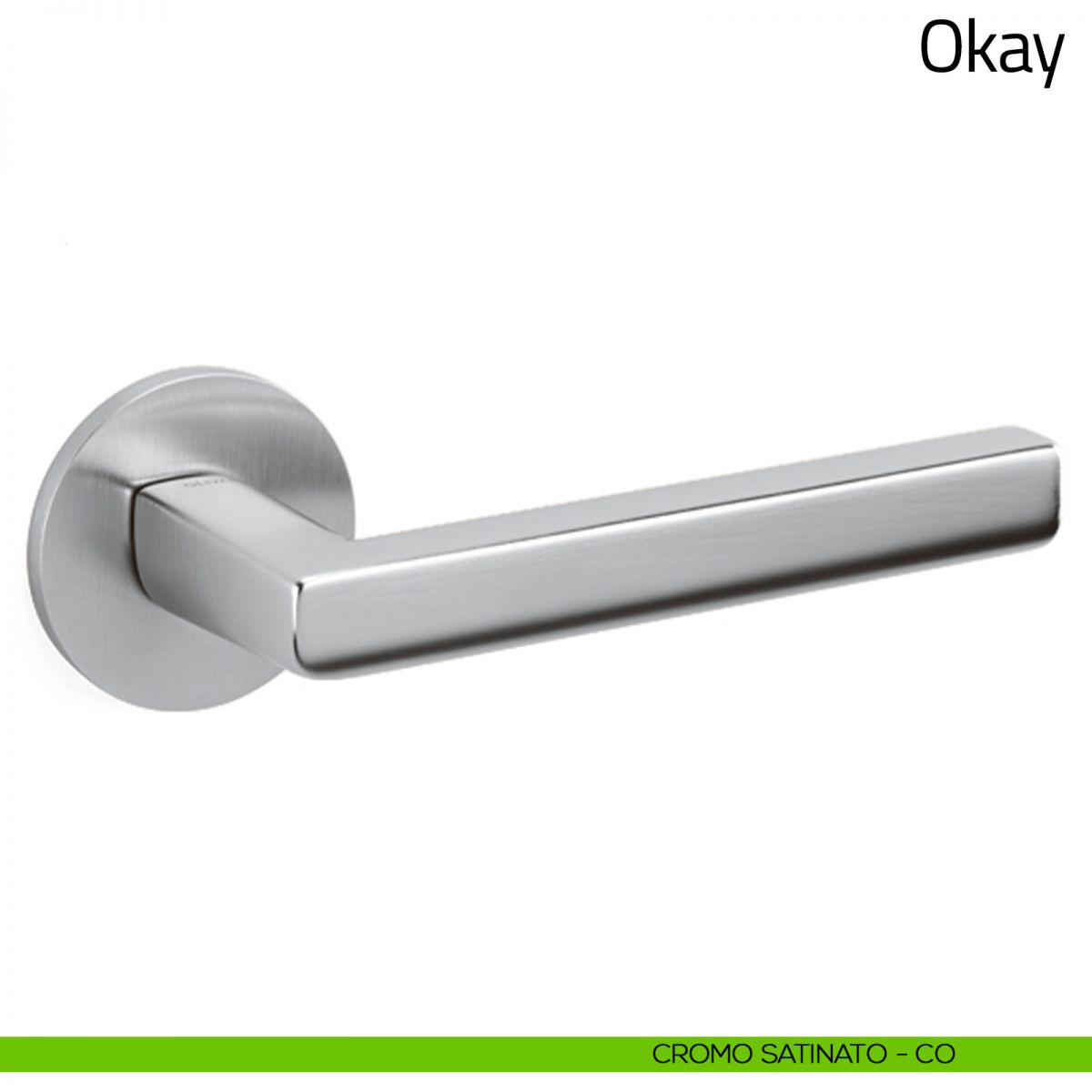 Maniglia per porta interna Okay Olivari con rosetta e bocchetta tonda bassa.