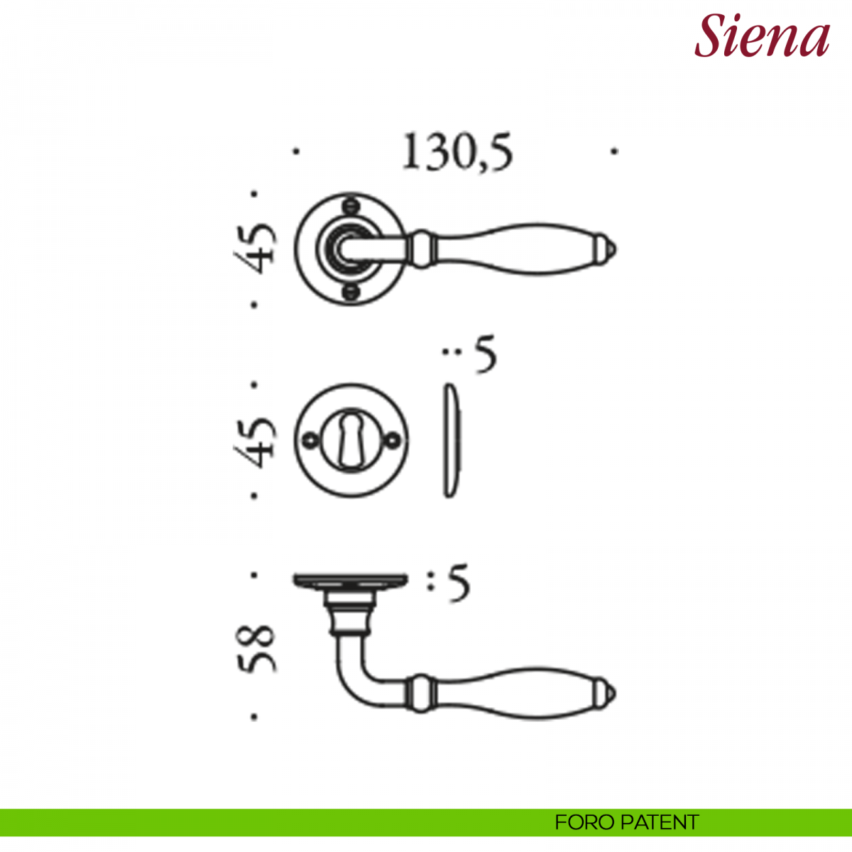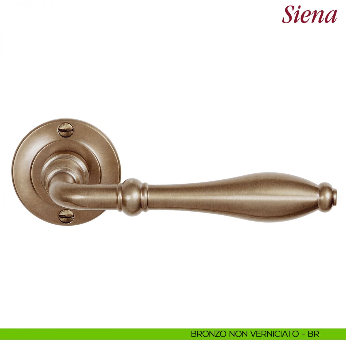 Maniglia per porta interna Siena Antologhia con rosetta e bocchetta bassa con molla di ritorno.