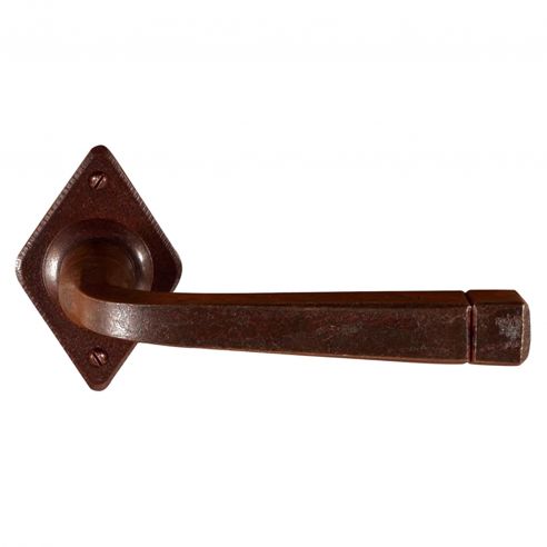 Maniglia in ferro per porta interna Il Forgiato FM 044 con rosetta e bocchetta con molla di ritorno.