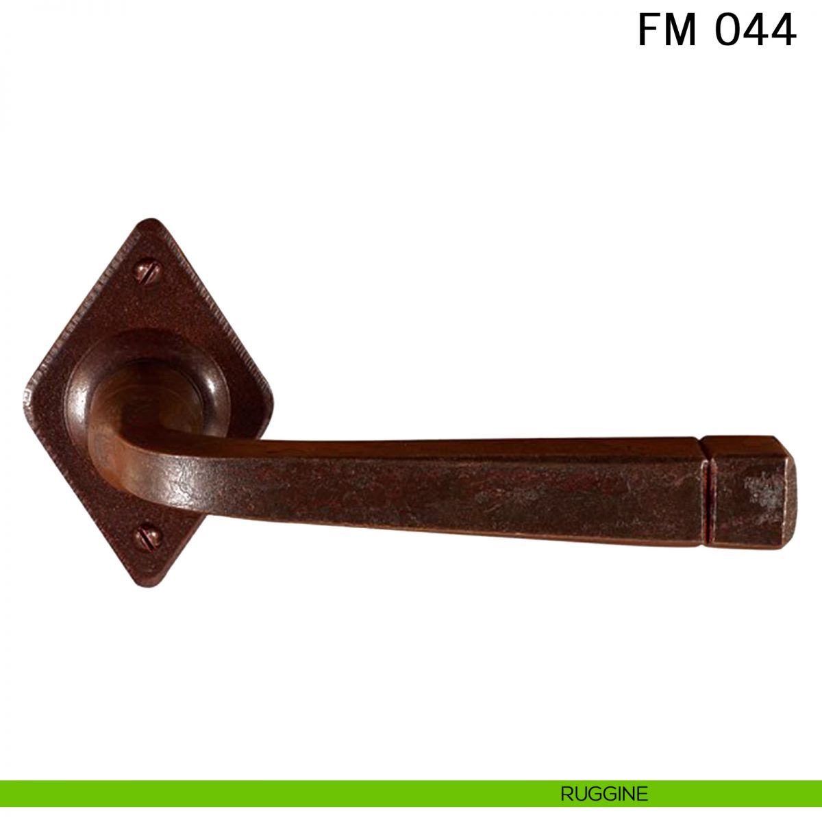 Maniglia in ferro per porta interna Il Forgiato FM 044 con rosetta e bocchetta senza molla di ritorno.