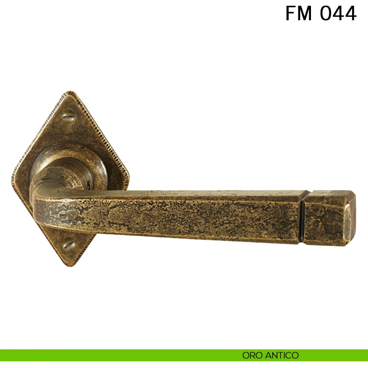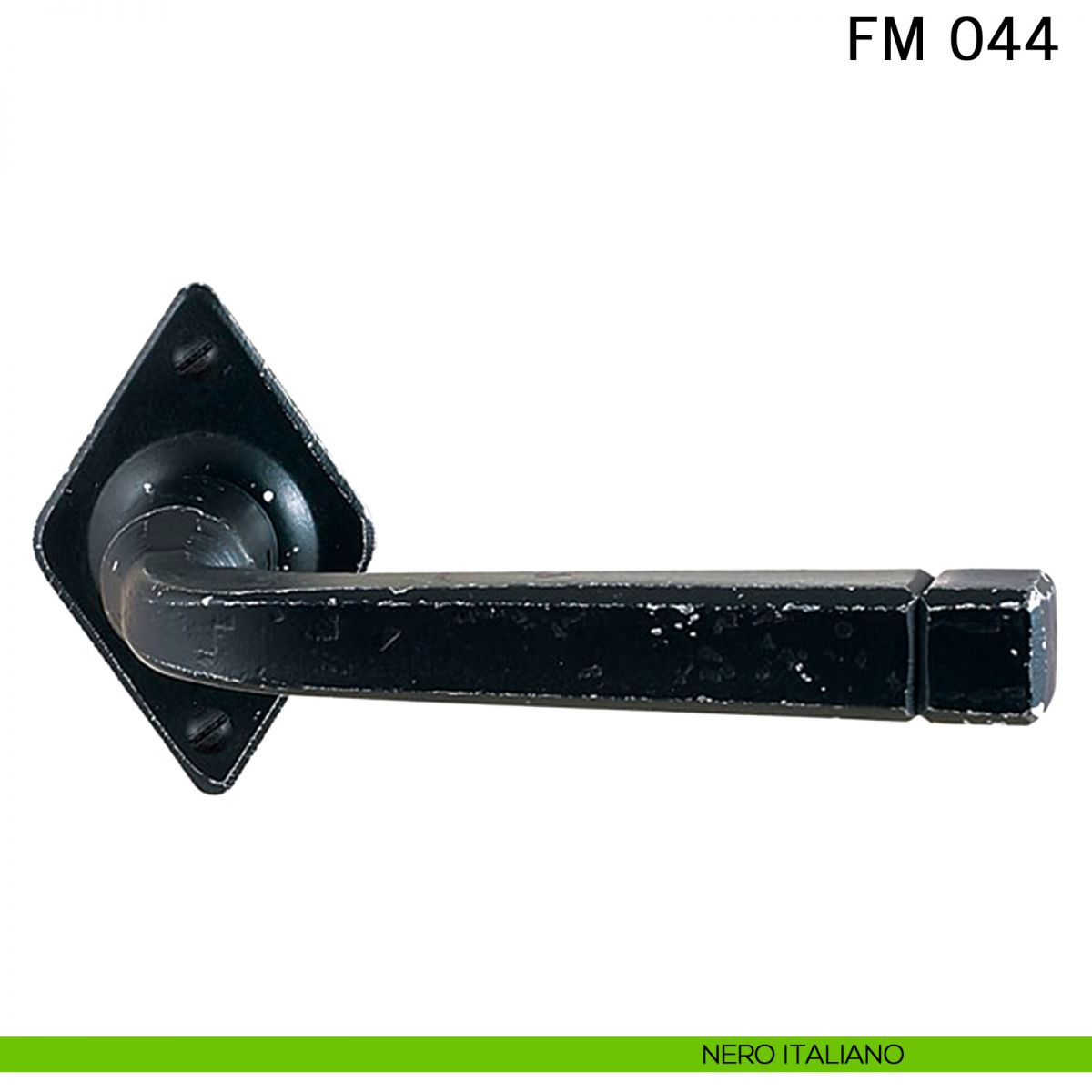 Maniglia in ferro per porta interna Il Forgiato FM 044 con rosetta e bocchetta con molla di ritorno.