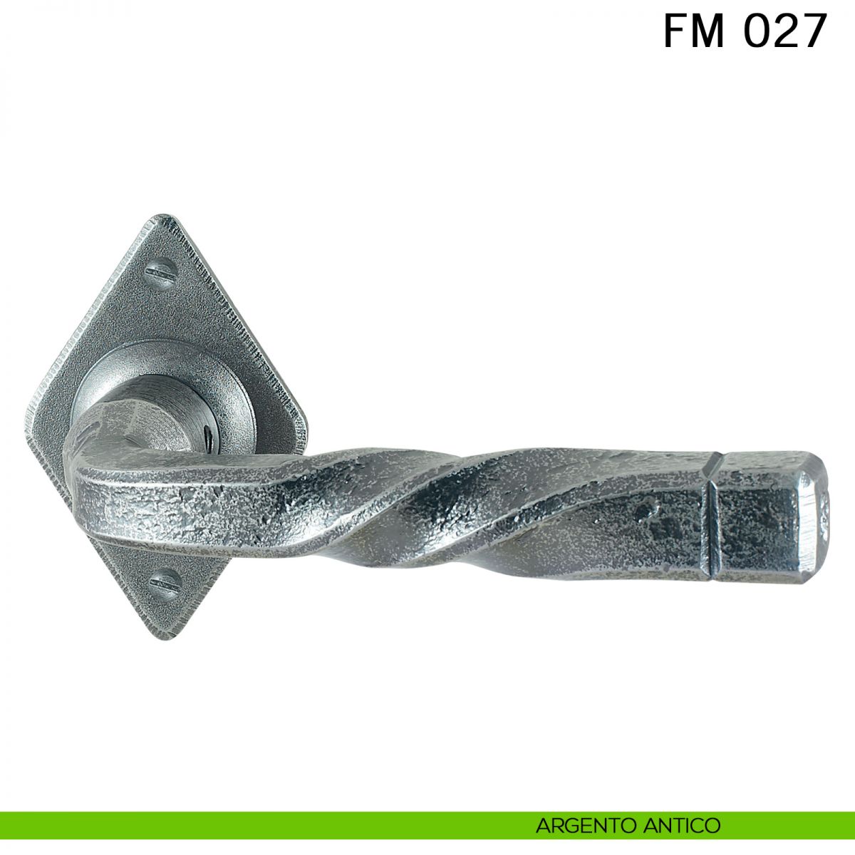 Maniglia in ferro per porta interna Il Forgiato FM 027 con rosetta e bocchetta senza molla di ritorno.
