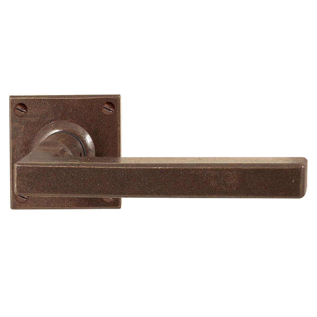 Maniglia in ferro per porta interna Il Forgiato FM 364 con rosetta e bocchetta con molla di ritorno.