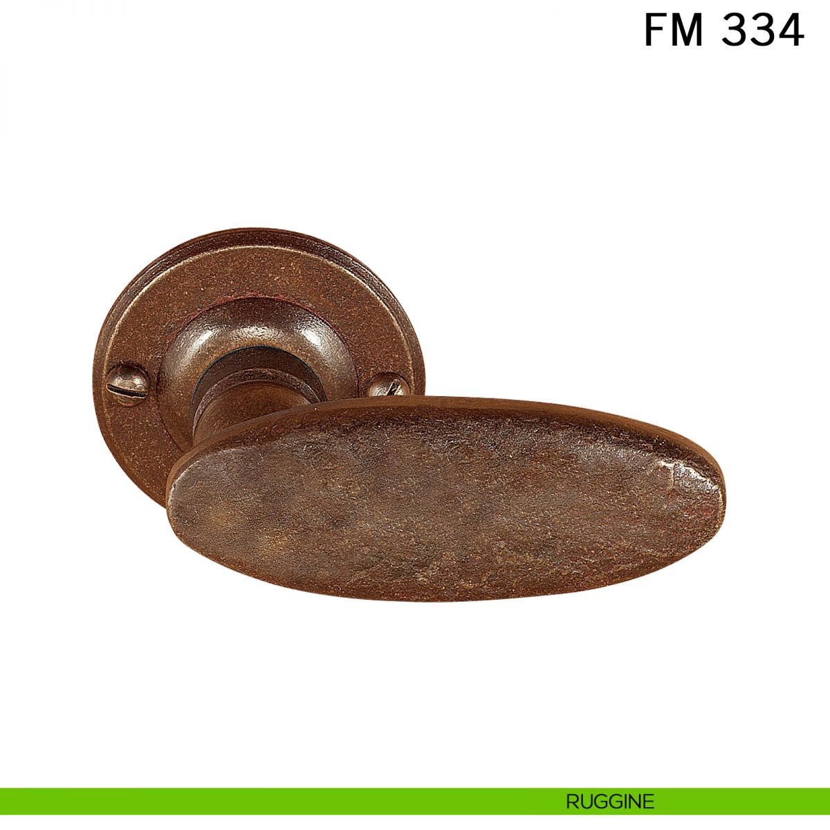 Maniglia in ferro per porta interna Il Forgiato FM 334 con rosetta e bocchetta senza molla di ritorno.