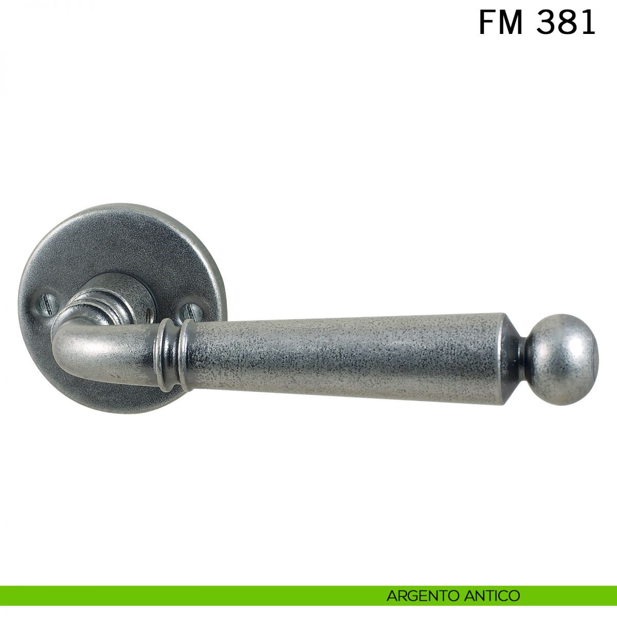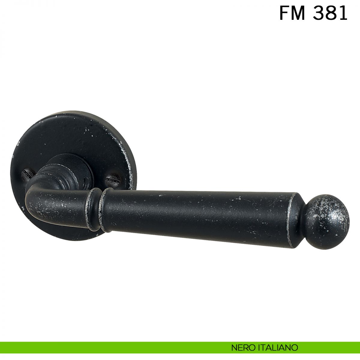 Maniglia in ferro per porta interna Il Forgiato FM 381 con rosetta e bocchetta.
