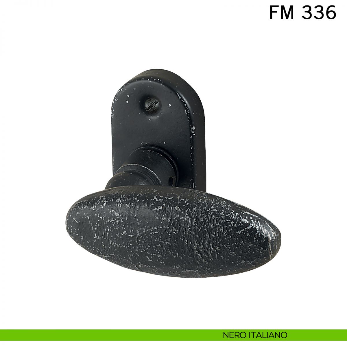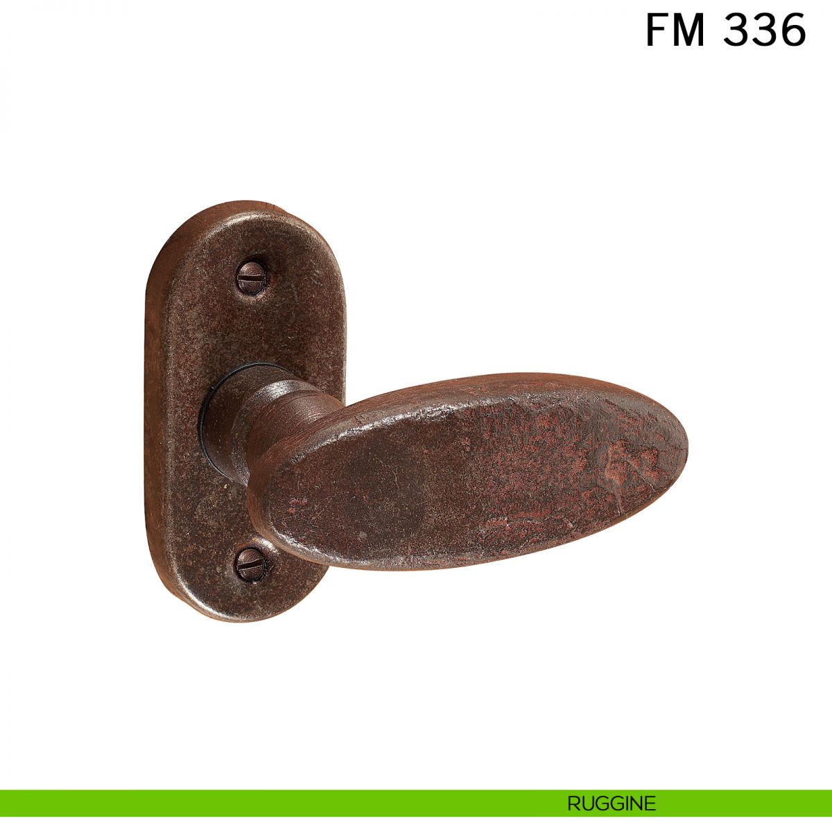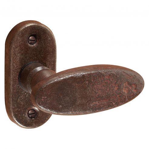 Maniglia in ferro per porta interna Il Forgiato FM 366 con rosetta e bocchetta ovale.