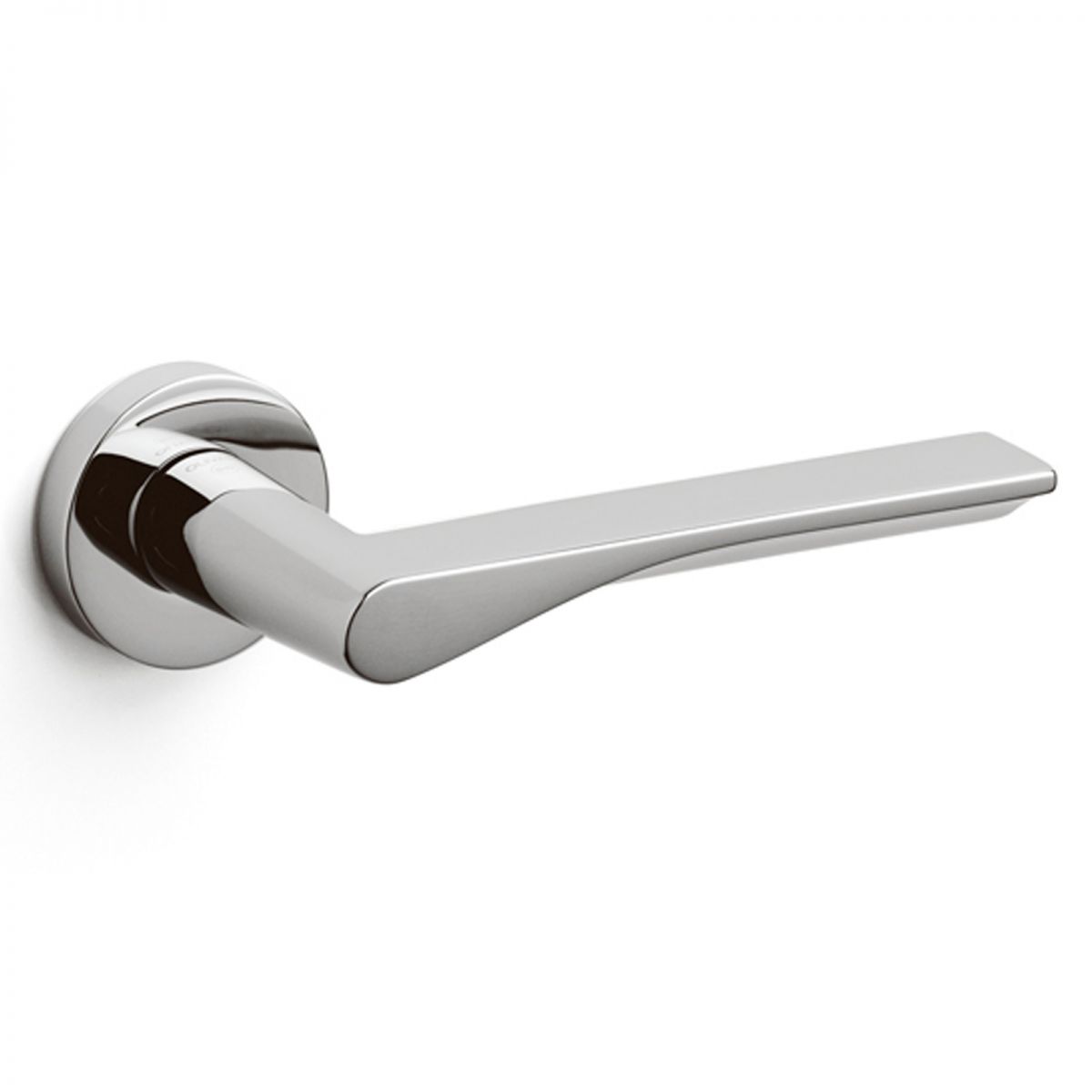 Maniglia per porta interna Fin Olivari con rosetta e bocchetta tonda. Design by Toyo Ito.