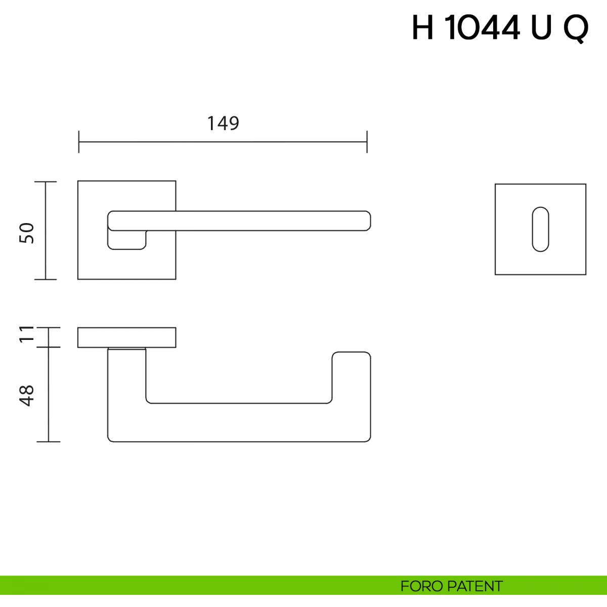 Maniglia per porta H 1044 Q U Valli collezione Fusital con rosetta quadra.