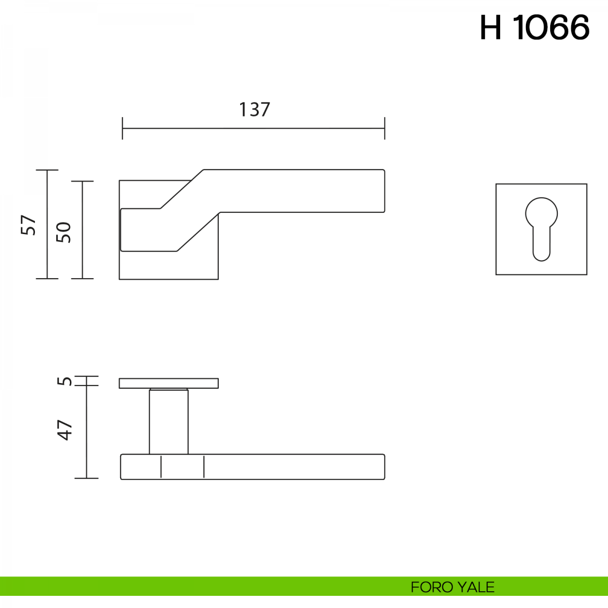 Maniglia per porta H 1066 Valli collezione Fusital con rosetta e bocchetta quadrata fine. Design by Bertone Design.