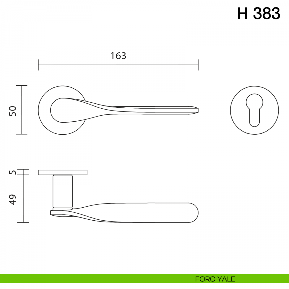 Maniglia per porta H 383 Valli collezione Fusital con rosetta e bocchetta tonda fine.