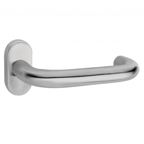Maniglia in acciaio per porta Spagna Fimet Inox con rosetta e bocchetta ovale. Design by Fimet Inox Project.