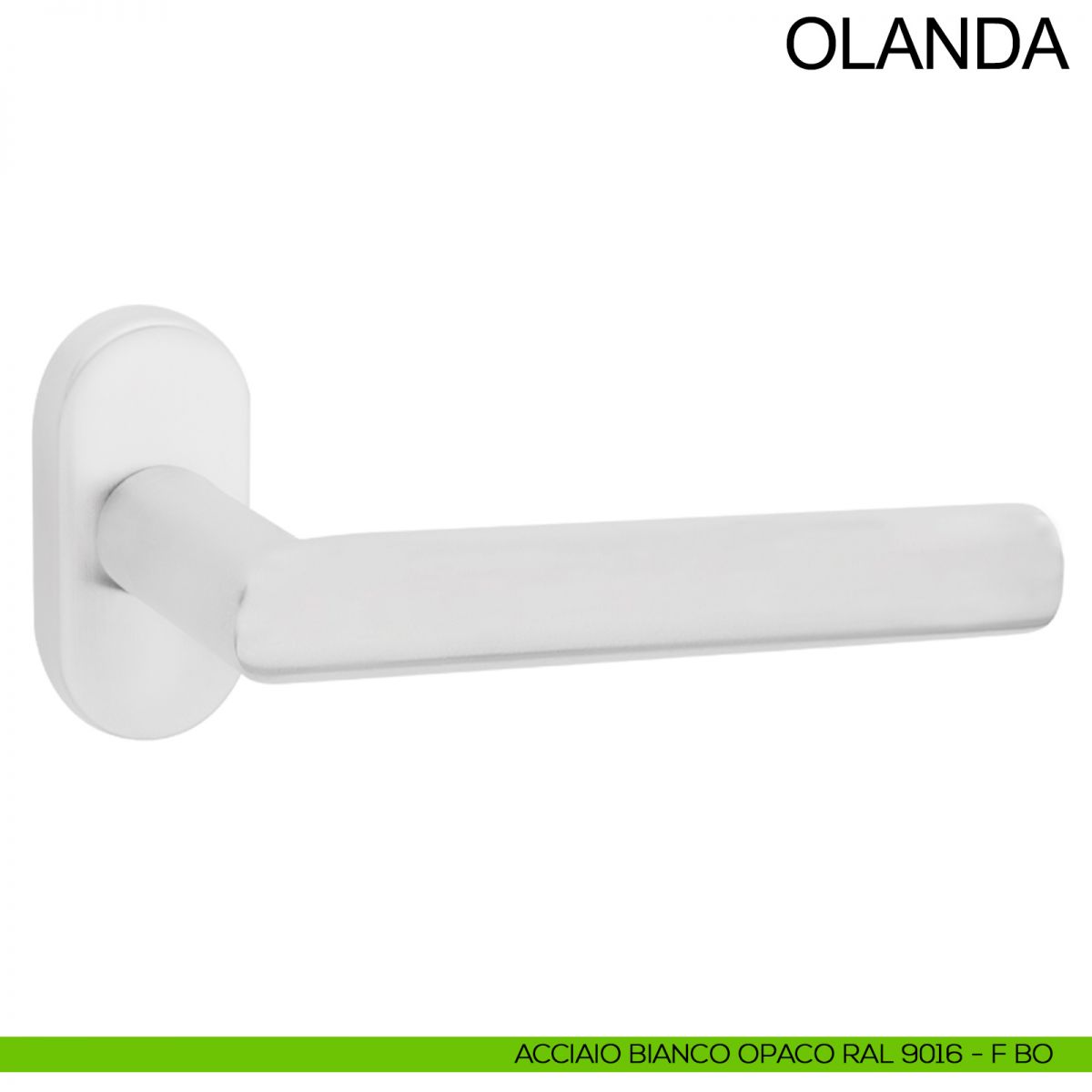 Maniglia in acciaio per porta Olanda Fimet Inox rosetta e bocchetta ovale.