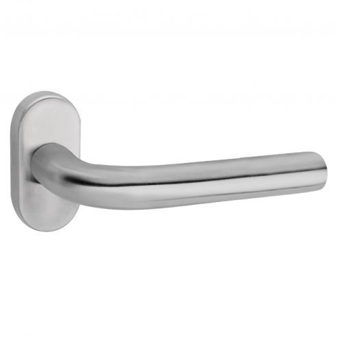 Maniglia in acciaio per porta Svizzera Fimet Inox rosetta e bocchetta ovale. Design by Fimet Inox Project.