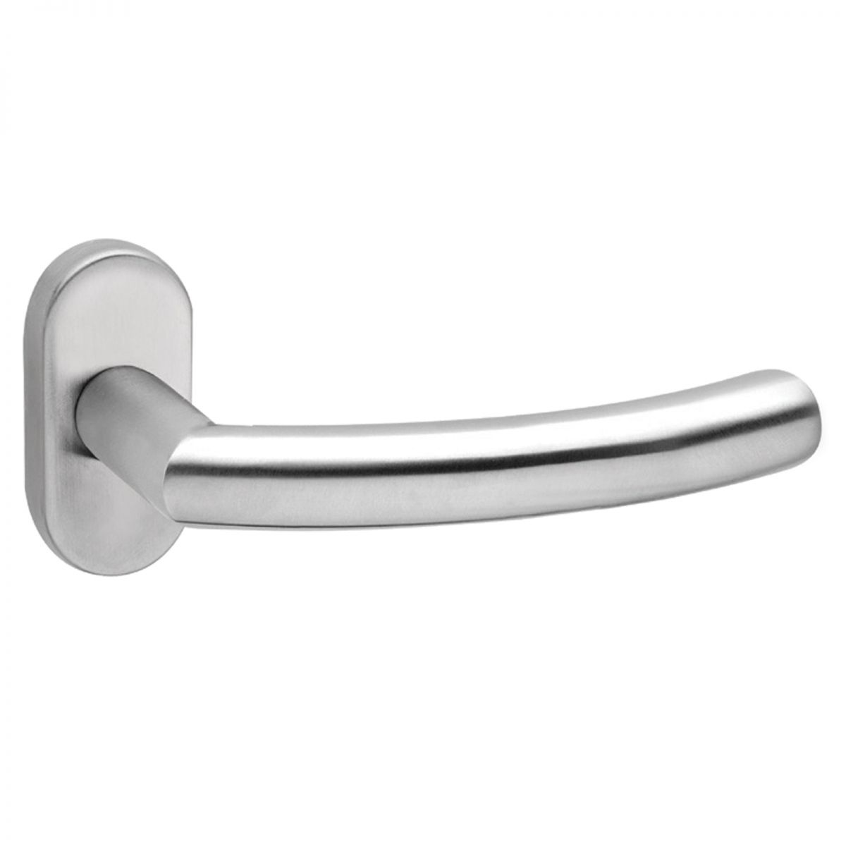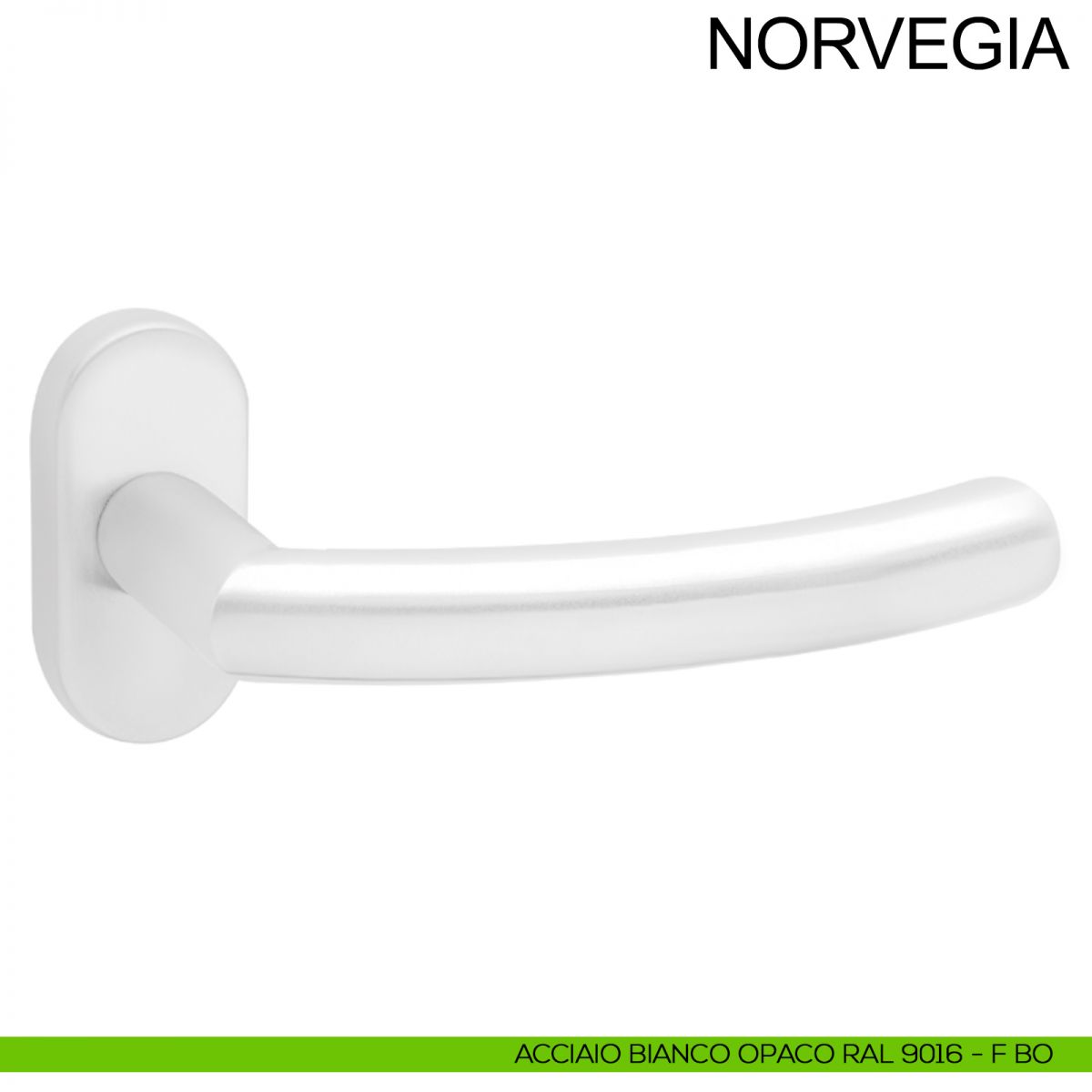 Maniglia in acciaio per porta Norvegia Fimet Inox rosetta e bocchetta ovale.