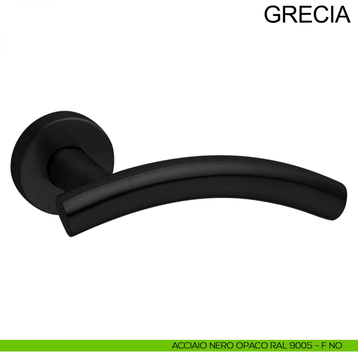 Maniglia in acciaio con rosetta ovale per porta Grecia Fimet Inox.