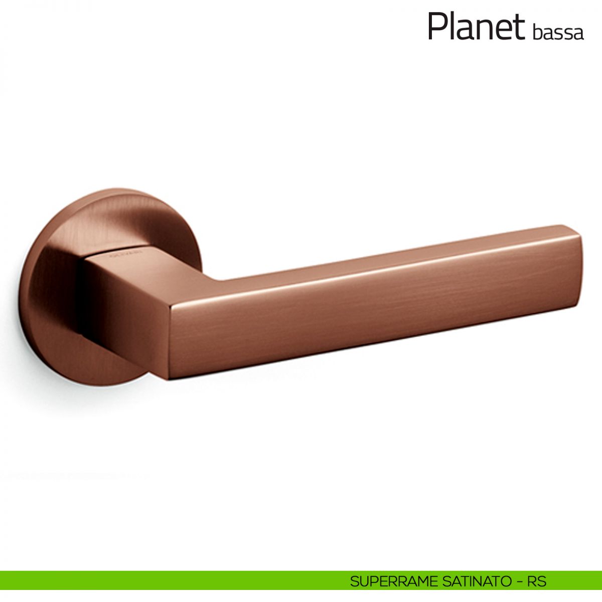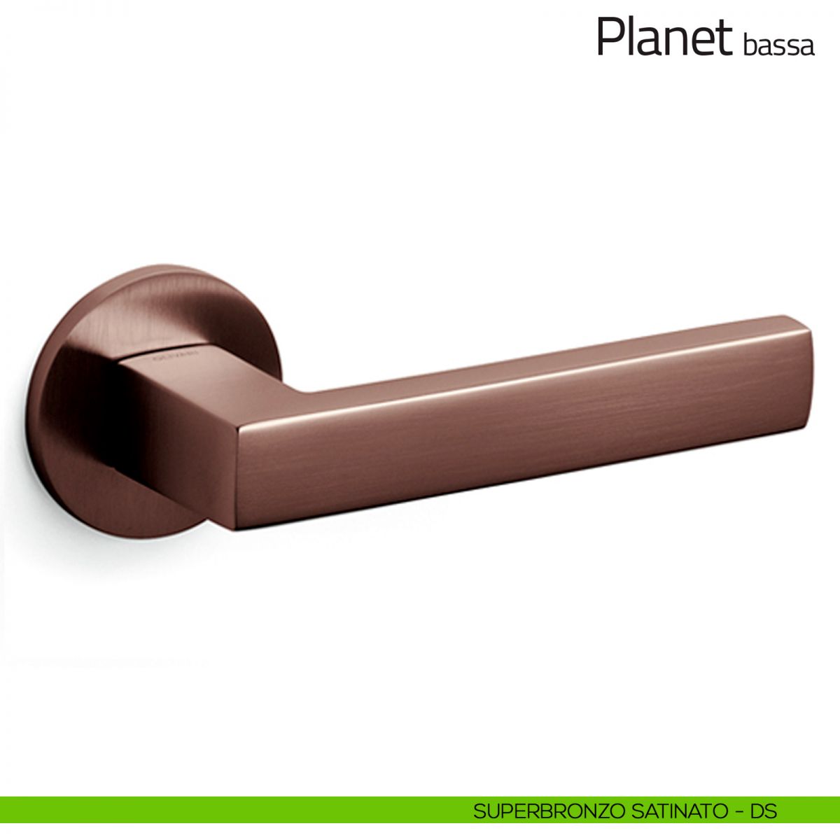 Maniglia per porta interna Planet Olivari con rosetta e bocchetta tonda bassa. Design by Luca Casini.