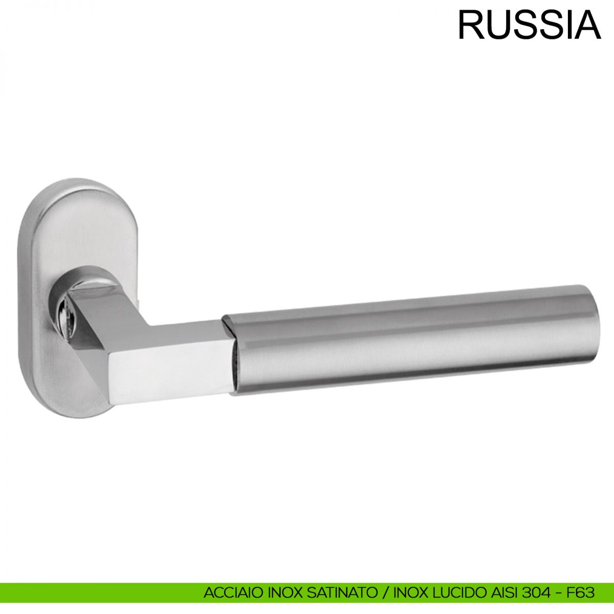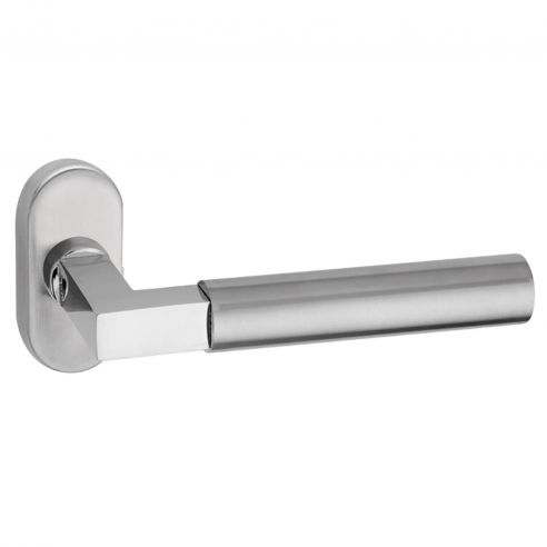 Maniglia in acciaio per porta Russia Fimet Inox con rosetta e bocchetta ovale. Design by Fimet Inox Project.