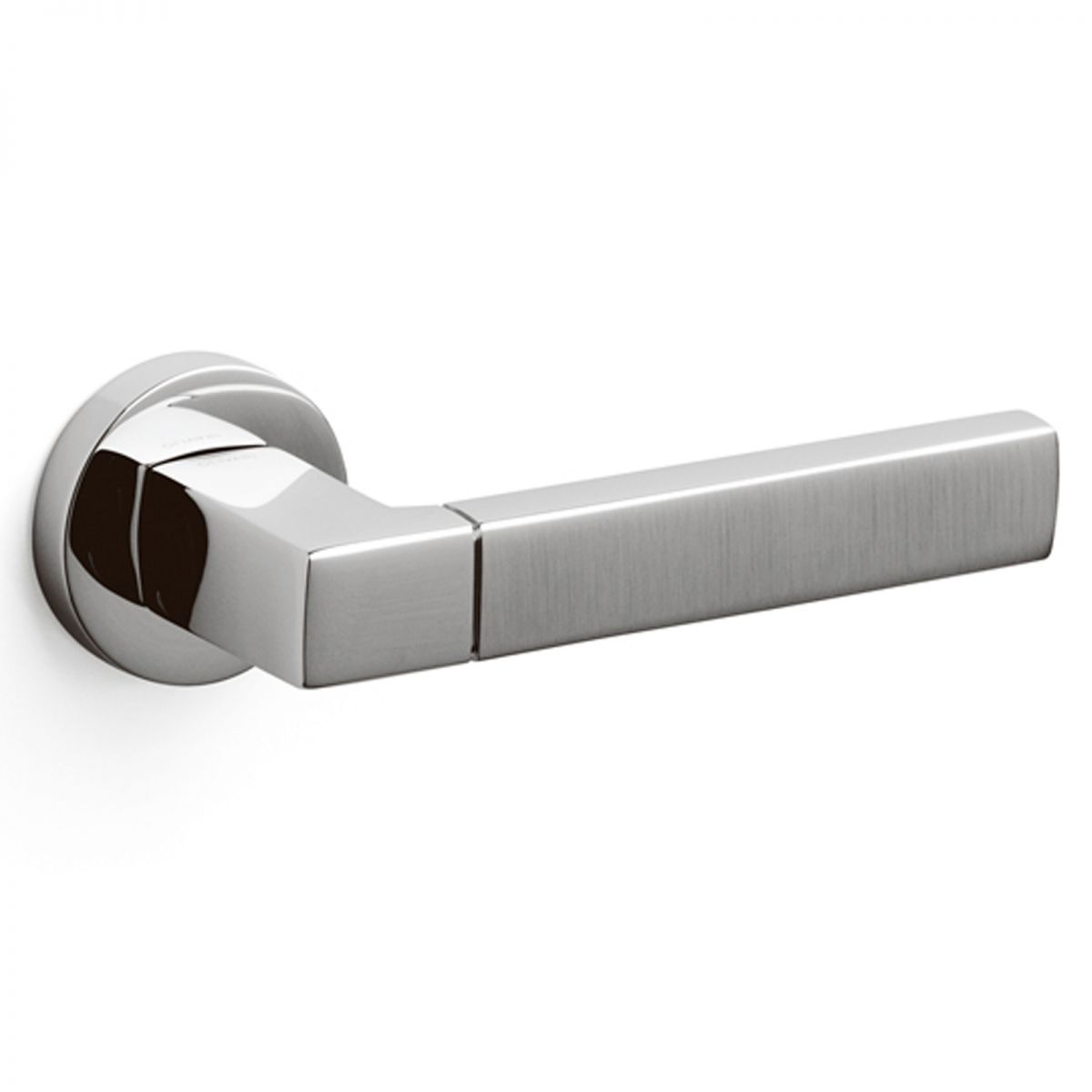 Maniglia per porta interna Planet bicolor Olivari con rosetta e bocchetta tonda. Design by Luca Casini.