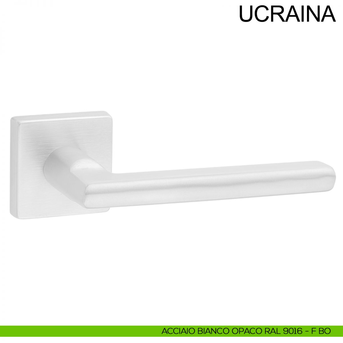 Maniglia in acciaio per porta Ucraina Fimet Inox con rosetta e bocchetta quadrata.