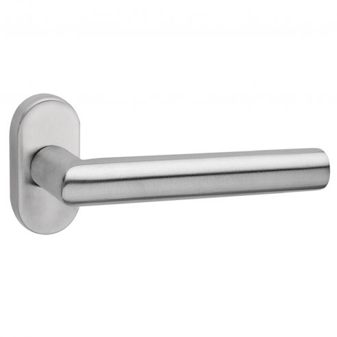 Maniglia ribassata in acciaio per porta Olanda Fimet Inox con rosetta e bocchetta ovale. Design by Fimet Inox Project.