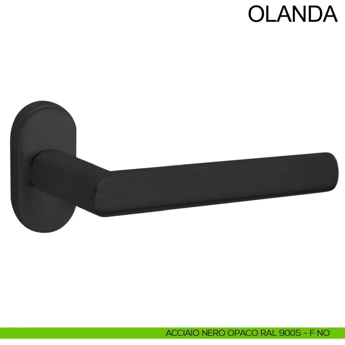 Maniglia zancata in acciaio per porta Olanda Fimet Inox con rosetta e bocchetta ovale. Design by Fimet Inox Project.