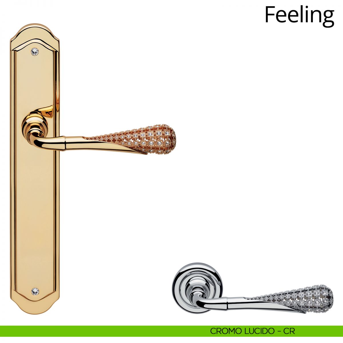 Maniglia per porta interna Swarovski Feeling Linea Calì con placca.