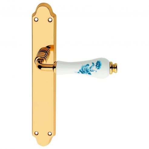 Maniglia porcellana bianca fiori blu con placca per porta Dalia Linea Calì
