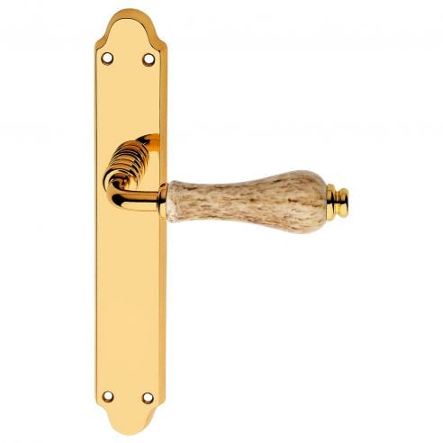 Maniglia porcellana maculata con placca per porta Dalia Linea Calì.