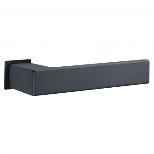 Maniglia per porta Kubo Alu Fimet Handles su rosetta quadrata.