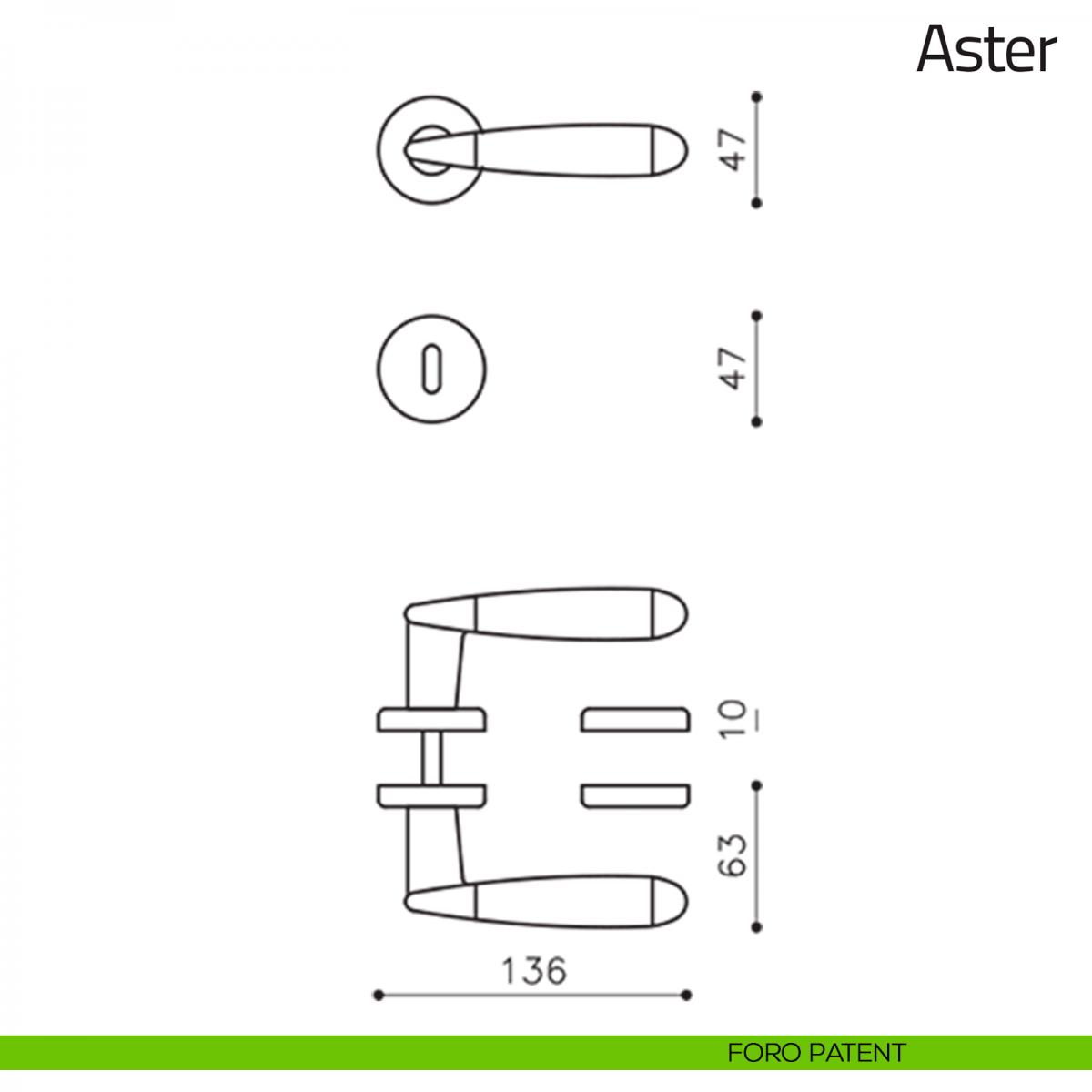 Maniglia per porta interna Aster con rosetta e bocchetta tonda. Design by Penta associati.