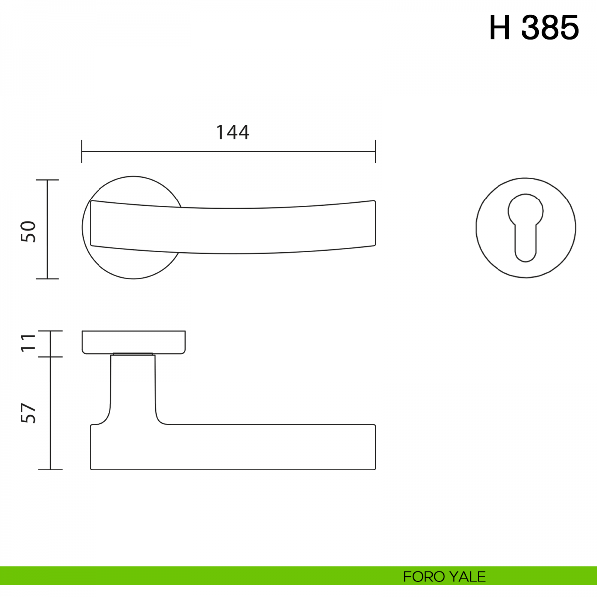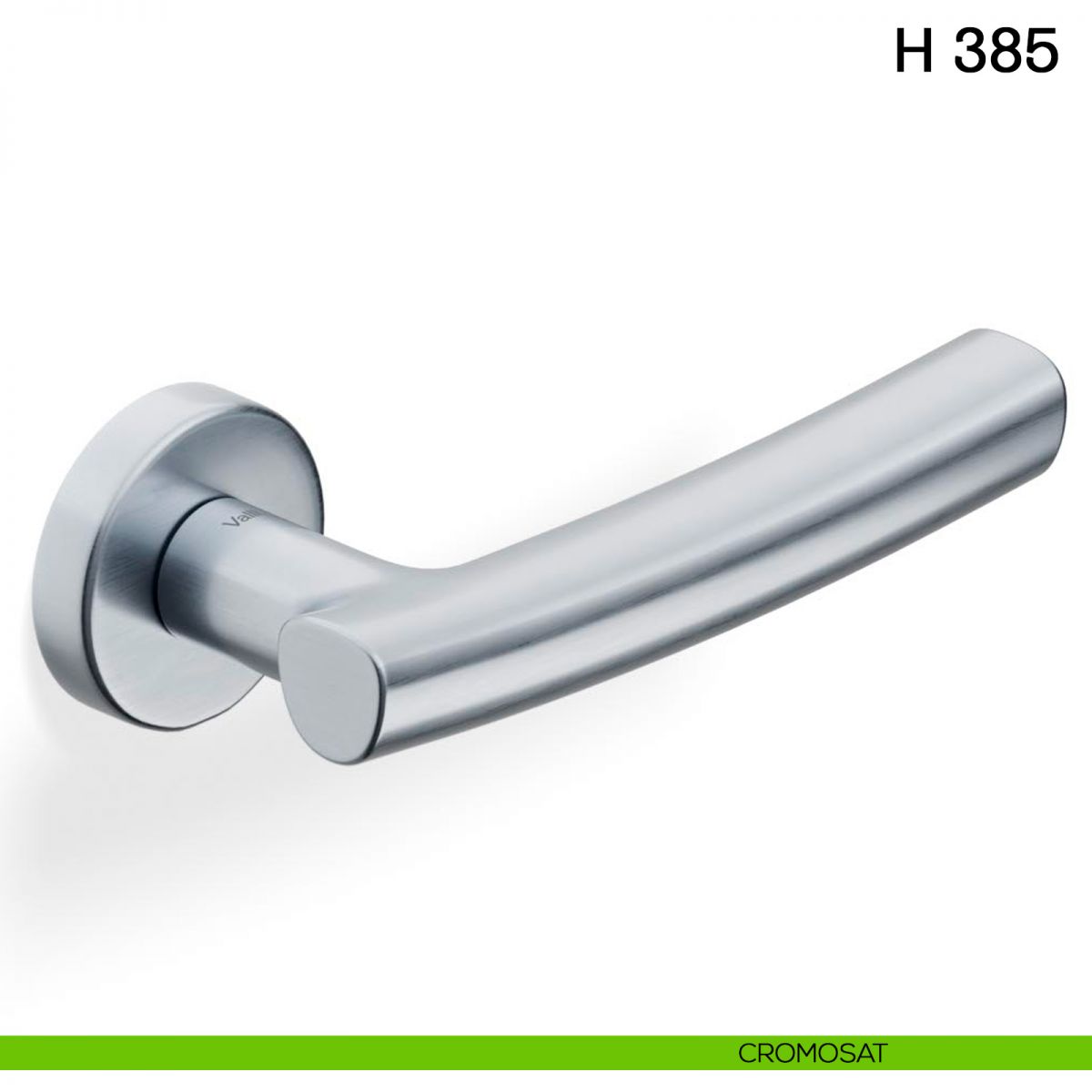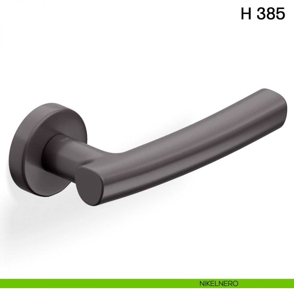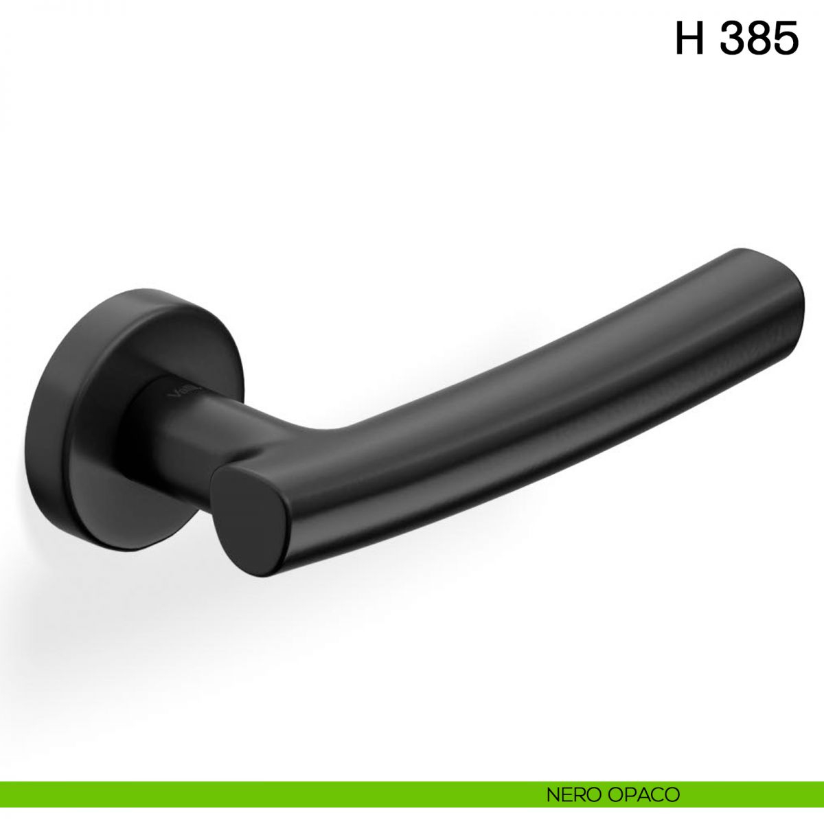 Maniglia per porta interna H 385 Valli collezione Fusital con rosetta e bocchetta tonda. Design by Federica Biasi.