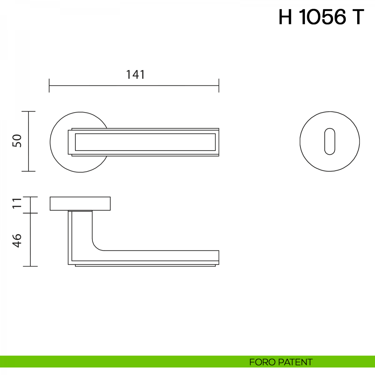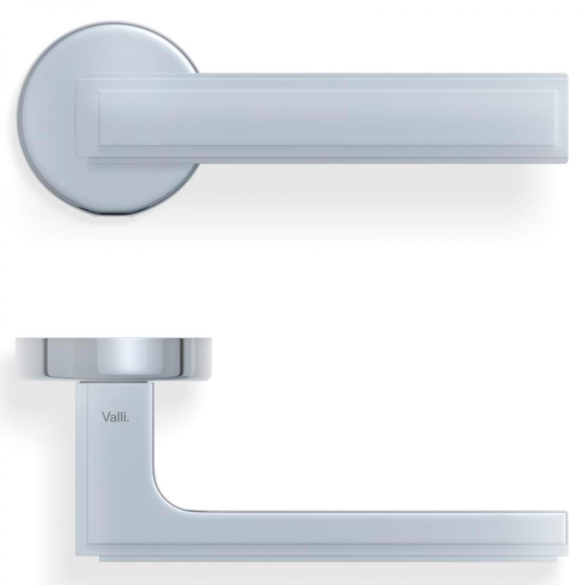 Maniglia per porta interna H 1056 T Valli collezione Lab con rosetta e bocchetta tonda. Design by Valli Workshop.