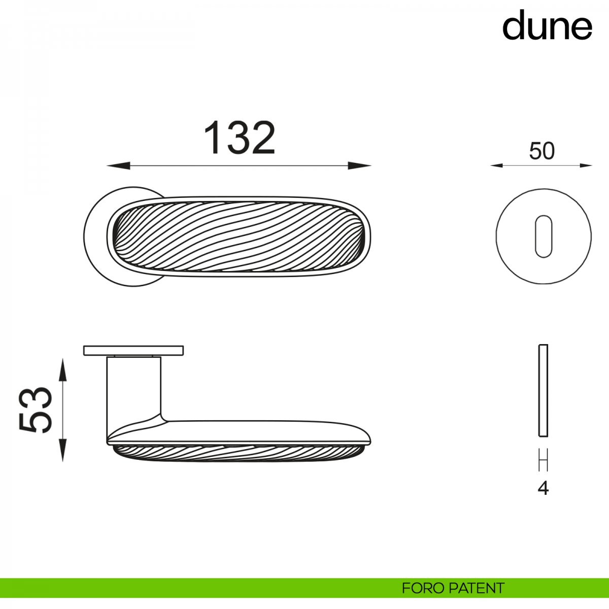 Dune dnd viene offerta con diversi tipi di versione, il foro patent (comunemente chiamato foro chiave), la versione yale (foro cilindro), placca cieca senza foratura (dove la chiusura non è necessaria) e nottolino WC (utilizzato in genere nelle porte dei bagni o stanze da letto). Per un ottimale risultato di installazione è consigliato attenersi alle istruzioni di montaggio di cuoi ogni singola maniglia Dune dnd Martinelli è corredata.