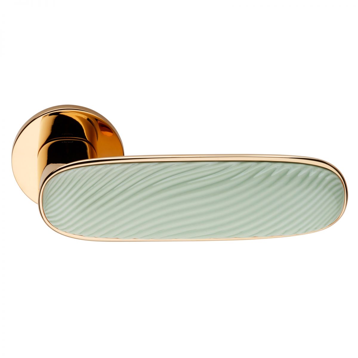 Maniglia per porta interna Dune dnd Handles con porcellana verde menta e rosetta e bocchetta tonda fine. Design by Elena Salmistraro.